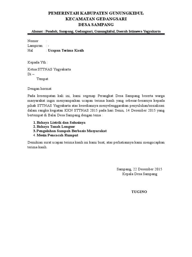 Surat Ucapan Terima Kasih Purna Tugas Cara Golden from i0.wp.com Ucapan terima kasih kepada konsumen atas surat komplain yang telah dikirim Selain 5 jenis ucapan yang tadi kami sebutkan di atas, ada jenis ucapan lain yang bisa anda katakan ketika ingin berterima kasih kepada orang lain secara formal yaitu that's a very kind of you atau yang memiliki arti terima kasih atau anda baik sekali. Contoh surat ucapan terima kasih atas kerjasama dalam bahasa inggris menulis surat profesional adalah salah satu hal yang pasti akan dilakukan cepat atau lambat dalam sebuah lingkungan kerja. Saya mengucapkan terima kasih banyak atas semua hal yang telah saya terima selama ini. Adapun isi yang wajib ada dalam surat balasan pengaduan barang yaitu sebagai berikut: Contoh surat pengunduran diri atau contoh surat resign nah pada kesempatan kali ini, kami berikan contoh surat pengunduran diri bila anda kerepotan dalam membuatnya atau kebingungan bagaimana cara membuat surat pengunduran diri atau cara membuat surat berhenti kerja, silahkan disalin saja contoh surat pengunduran pekerjaan di bawah. Surat sampel contoh surat untuk pencari kerja, termasuk surat pengantar, surat wawancara terima kasih, surat tindak lanjut, penerimaan pekerjaan dan surat penolakan, surat pengunduran diri, surat penghargaan, dan lebih banyak contoh surat kerja yang bagus. Pantun terima kasih ialah salah satu cara untuk dapat mengungkapkannya baik kepada orang tua, teman, guru ataupun pasangan.