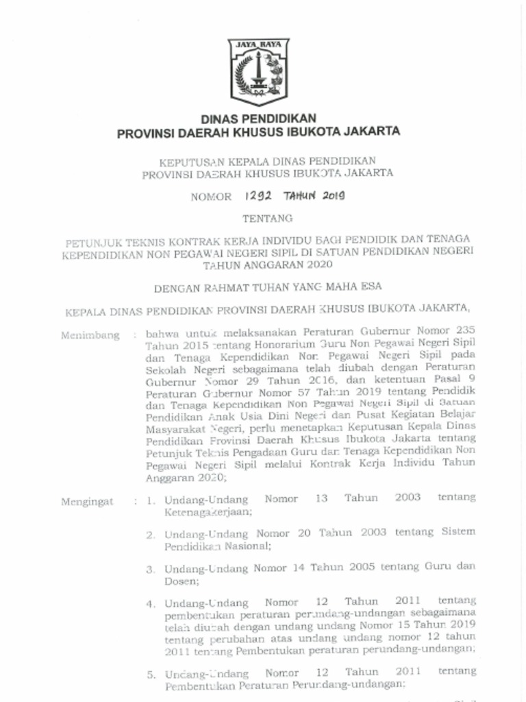 Sma negeri 16 jakarta whatsapp image 2018 12 21 at 15 56 18. Kepdis kki th 2020 1 pdf. Program kerja individu kukerta unja 2019/2020. Portal data terpadu pemprov dki jakarta jl. Didalam kontrak ini termaktub dan termuat semua pokok aturan, larangan, dan cara penyelesaian perselisihan jika terjadi selisih pendapat atau kekeliruan data dalam perhitungan teknis kerja. Bertindak sebagai pemilik rumah dan selanjutnya akan di sebut sebagai pihak pertama. Pendapatan dki sangat bergantung pada perolehan sektor pajak daerah yang menguasai proyeksi pad dki 2020 sebesar 87,1 persen. Recruitment kontrak kerja individu kki tenaga pendidik dan. Pada 2020, mereka bersama 11 orang lainnya diangkat menjadi pegawai kontrak kerja individu (kki) dengan penghasilan sesuai ump dki jakarta. Pada hari senin 6 desember 2020, saya yang bertanda tangan di bawah ini: Keputusan kepala sdn duri kepa 07 jakarta no.042 tahun 2019 tentang panitia penerimaan pendidik dan tenaga kependidikan dengan kontrak kerja individu sekolah tahun anggaran 2020. Back to beranda » » recruitment kontrak kerja individu (kki) tenaga pendidik 3. Tirto telah menghubungi dinas pendidikan dki pada kamis 12 november 2020, mereka mengaku telah mempelajari kondisi yang ada di pkbm negeri 24.